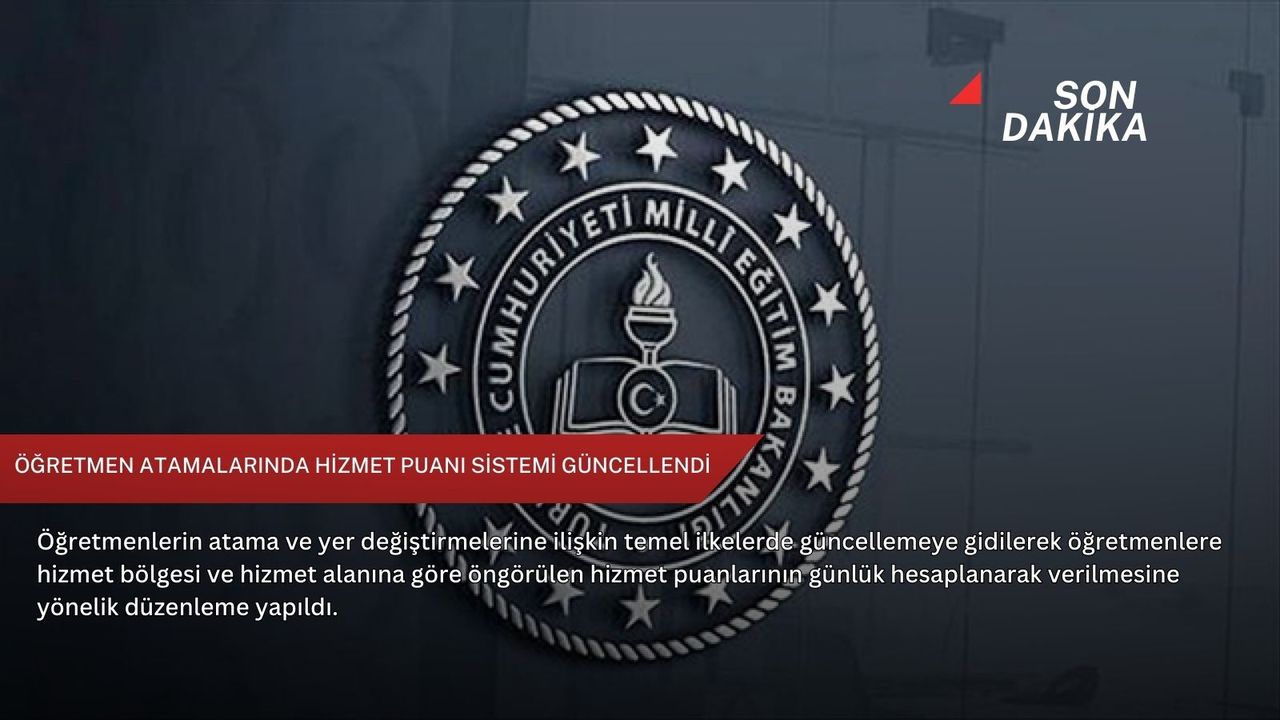 Öğretmenlerin görev yaptıkları bölge ve okul koşullarına göre adil puanlama yapılması hedefiyle hizmet puanı sistemi güncellendi. Buna göre, her okulun bulunduğu hizmet bölgesi ve hizmet alanına göre öngörülen puanlar günlük hesaplanacak.