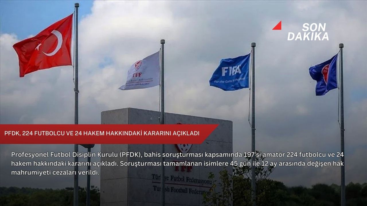 TFF'nin açıklamasına göre profesyonel müsabakalarda oynatılabilen amatör statüdeki 197 ve soruşturması tamamlanan 27 futbolcunun yanı sıra 24 hakemle ilgili kararlar verildi.