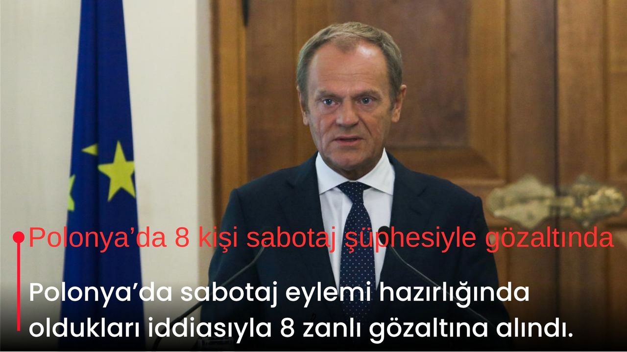 Polonya Başbakanı Donald Tusk, ABD merkezli X şirketinin sosyal medya platformundaki hesabından yaptığı paylaşımda, Polonya İç Güvenlik Teşkilatının (ABW) diğer güvenlik birimleriyle işbirliği içinde ülkenin çeşitli bölgelerinde sabotaj eylemi hazırlığında olduklarından şüphelenilen 8 kişinin gözaltına aldığını açıkladı.