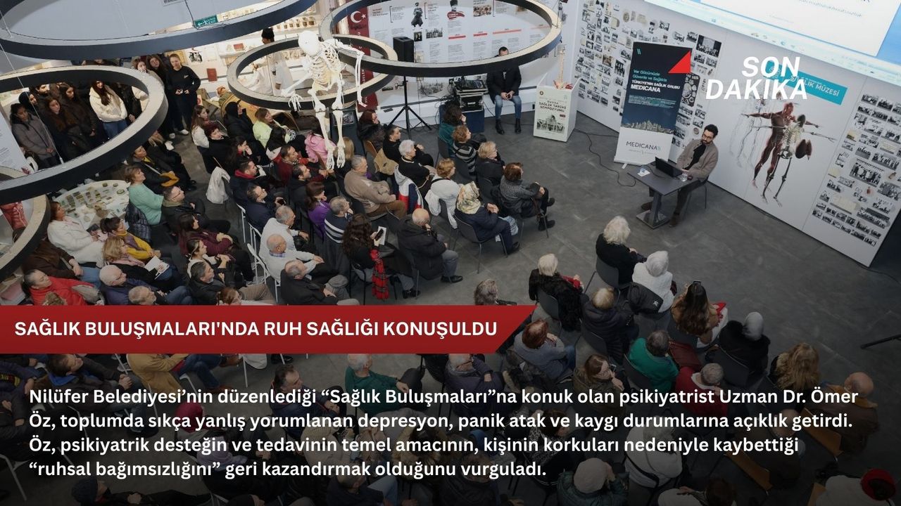 Nilüfer Belediyesi’nin toplum sağlığını korumak ve halkı bilinçlendirmek amacıyla düzenlediği “Sağlık Buluşmaları”nın konuğu psikiyatrist Uzm. Dr. Ömer Öz oldu. Nilüfer Belediyesi Dr. Ceyhun İrgil Sağlık Müzesi’nde düzenlenen etkinlikte Öz; depresyon, panik atak, kaygı bozuklukları ve takıntılar hakkında doğru bilinen yanlışları katılımcılarla paylaştı.