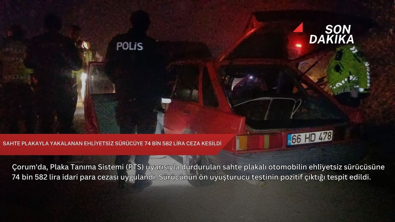 Sürücü D.D'ye "sahte plaka takmak ve kullanmak", "sürücü belgesi olmadan araç kullanmak" ve "tescil belgesi ve plaka olmadan trafiğe çıkmak" suçlarından toplam 74 bin 582 lira idari para cezası kesildi.