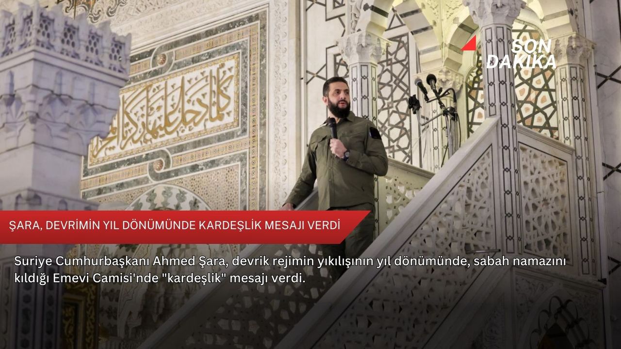 Devrimin yıl dönümüne değinen Şara, "Emevi Camisinden Şam'a girdiğimiz o anla birlikte, tüm ümmet için yeni bir tarih yazan devrimcileri ve kahraman savaşçıları hatırlıyoruz." ifadelerini kullandı.