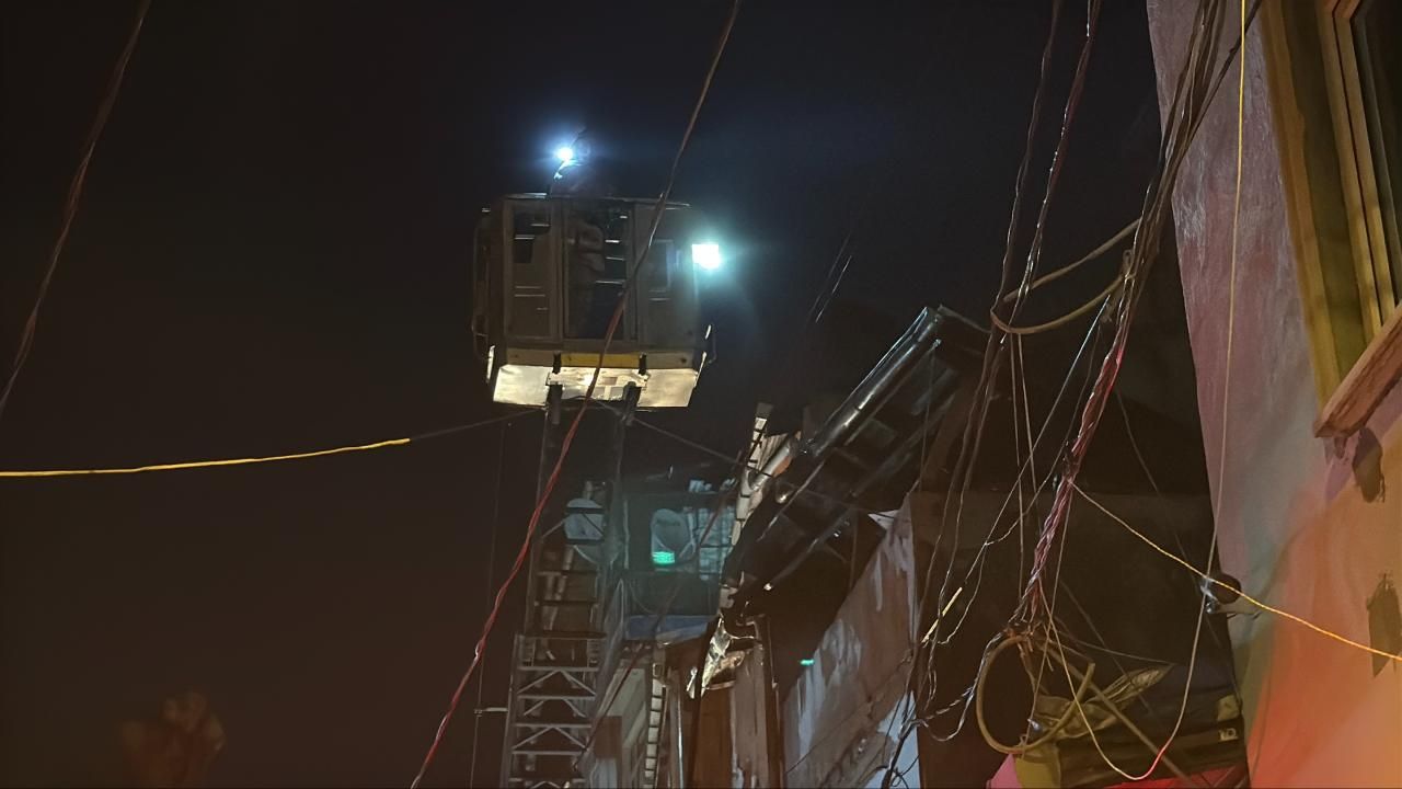 İtfaiye ekiplerinin yangına müdahale ettiği esnada binanın çatı katında kısmi çökme meydana geldi.
