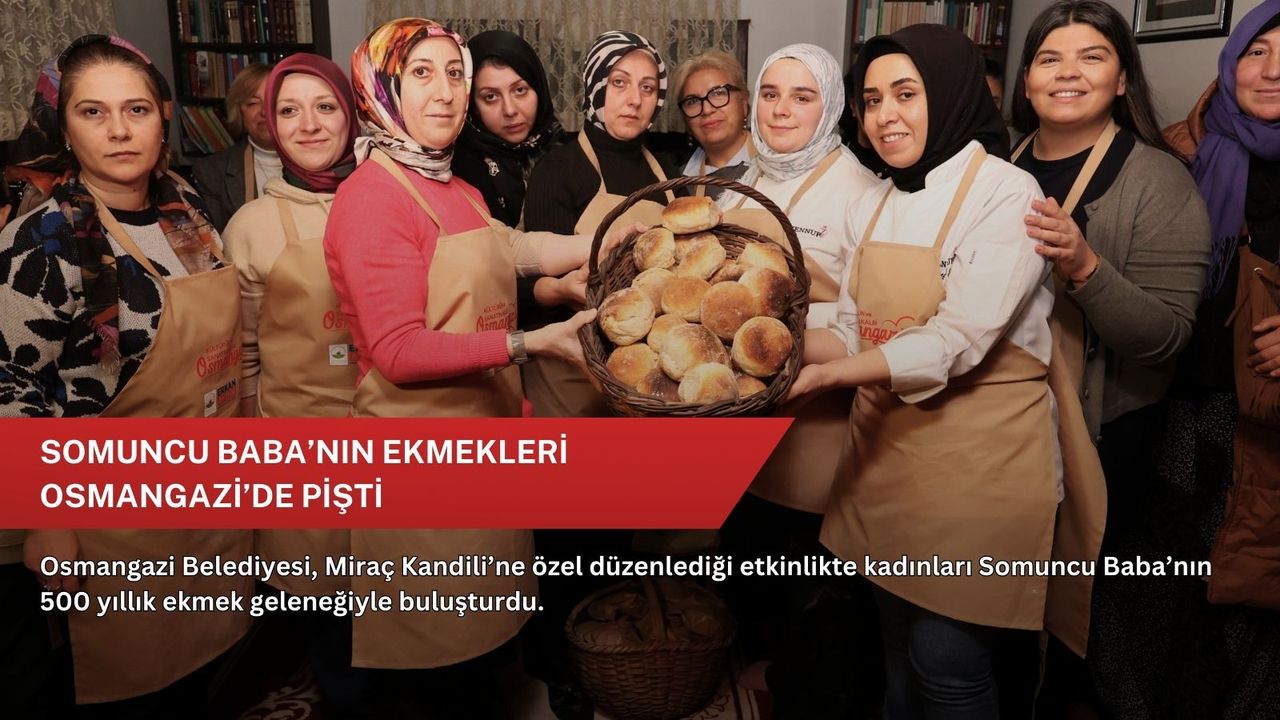Osmangazi Belediyesi, İslam inancında Hazreti Muhammed’in (S.A.V) göğe yükseldiği gece olarak kabul edilen Miraç Kandili dolayısıyla, “Somuncu Baba’nın İzinde Ekmek Yapım Atölyesi ve Tasavvuf Sohbetleri” programı düzenledi. Somuncu Baba Evi, Fırını ve Kültür Merkezi’nde gerçekleştirilen etkinlikte, Osmangazili kadınlar Somuncu Baba’nın asırlardır yaşatılan ekmek tarifini uygulamalı olarak öğrendi. Ulu Cami’nin inşaatında çalışan işçilere ekmek yetiştirdiği rivayet edilen Şeyh Hamid-i Veli’nin (Somuncu Baba) fırınlarının bulunduğu mekanda katılımcılar; un, su ve tuzdan oluşan hamuru mayalayarak, Somuncu Baba usulüne uygun ölçülerde ekmekler pişirdi.