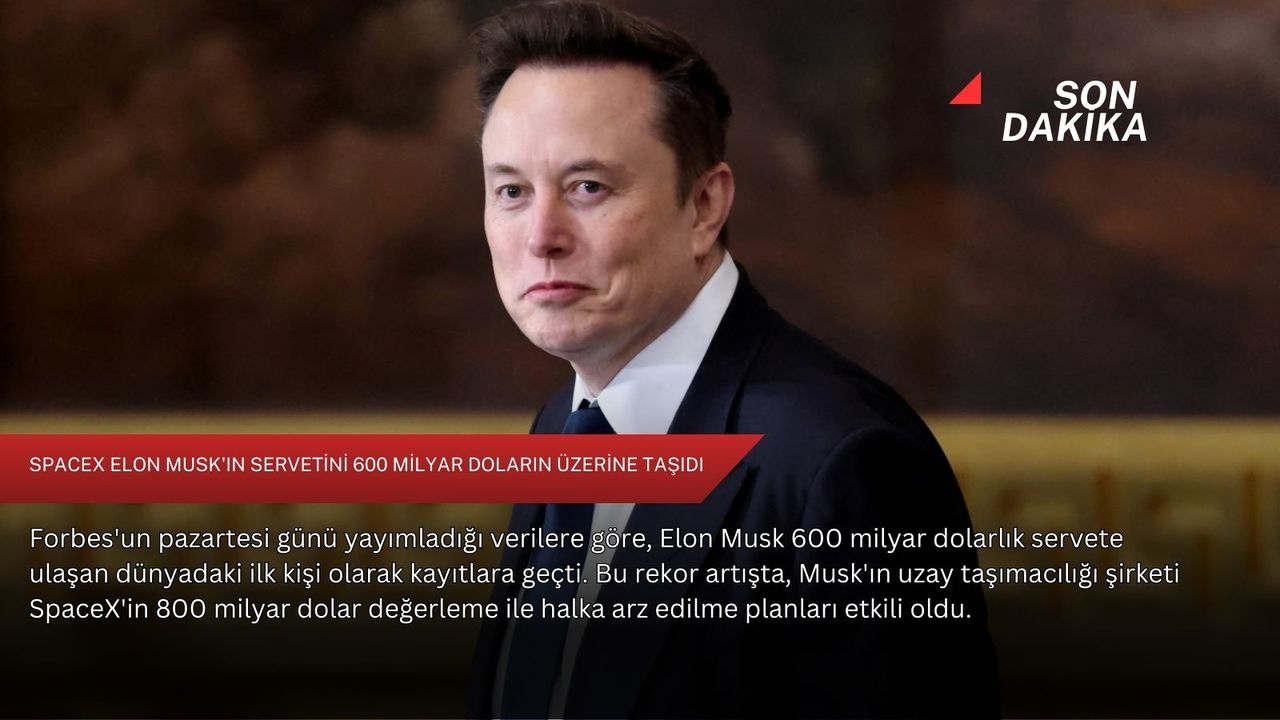 SpaceX'in yaklaşık yüzde 42'sine sahip olan 54 yaşındaki Musk'ın, önümüzdeki yıl gerçekleşmesi beklenen halka arzın başarıyla tamamlanması durumunda servetinin 168 milyar dolar daha artarak 677 milyar dolara ulaşabileceği öngörülüyor.