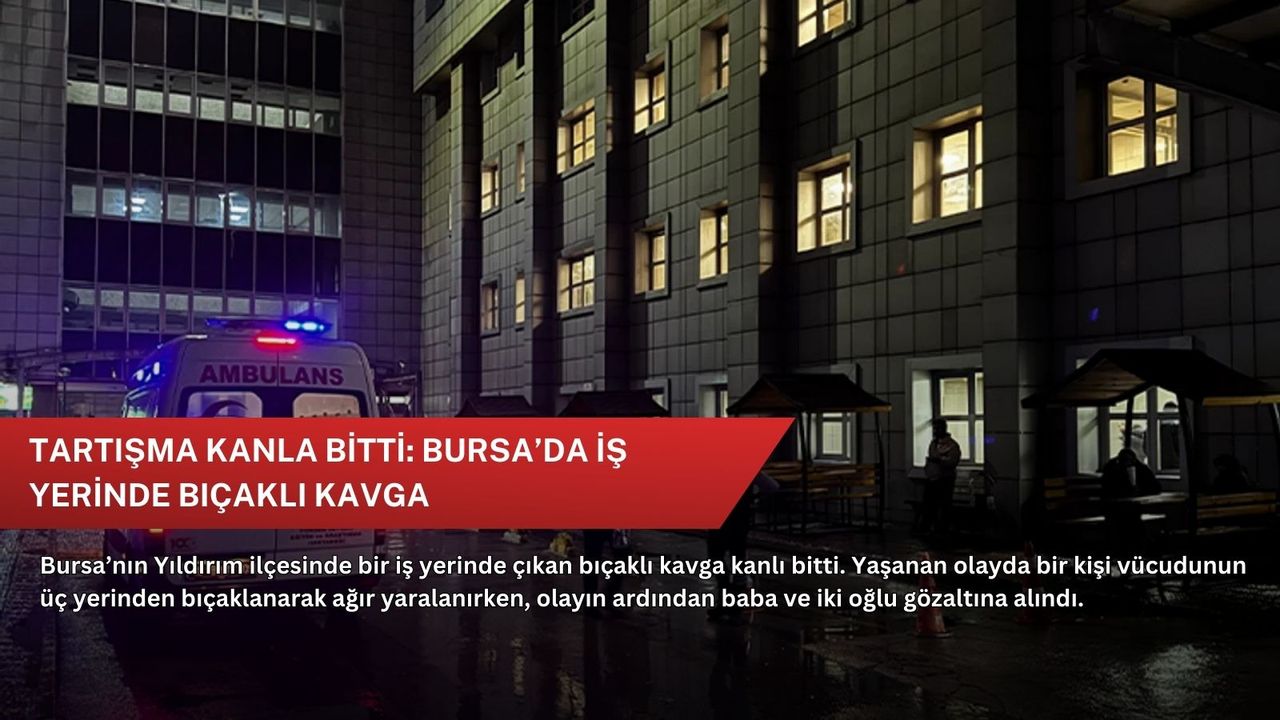 Olay, Yıldırım ilçesine bağlı Sinandede Mahallesi’nde meydana geldi. Edinilen bilgilere göre, kimliği henüz öğrenilemeyen bir baba, iki oğluyla birlikte Kerim Ç.’nin iş yerine geldi. Taraflar arasında henüz bilinmeyen bir sebeple başlayan tartışma kısa sürede kavgaya dönüştü. Yaşanan arbede sırasında Kerim Ç.’nin, baba tarafından bıçaklandığı öğrenildi.