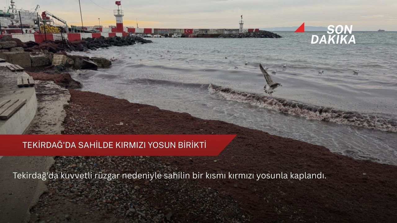Sahildeki bazı alanlarda kırmızı yosun birikti.