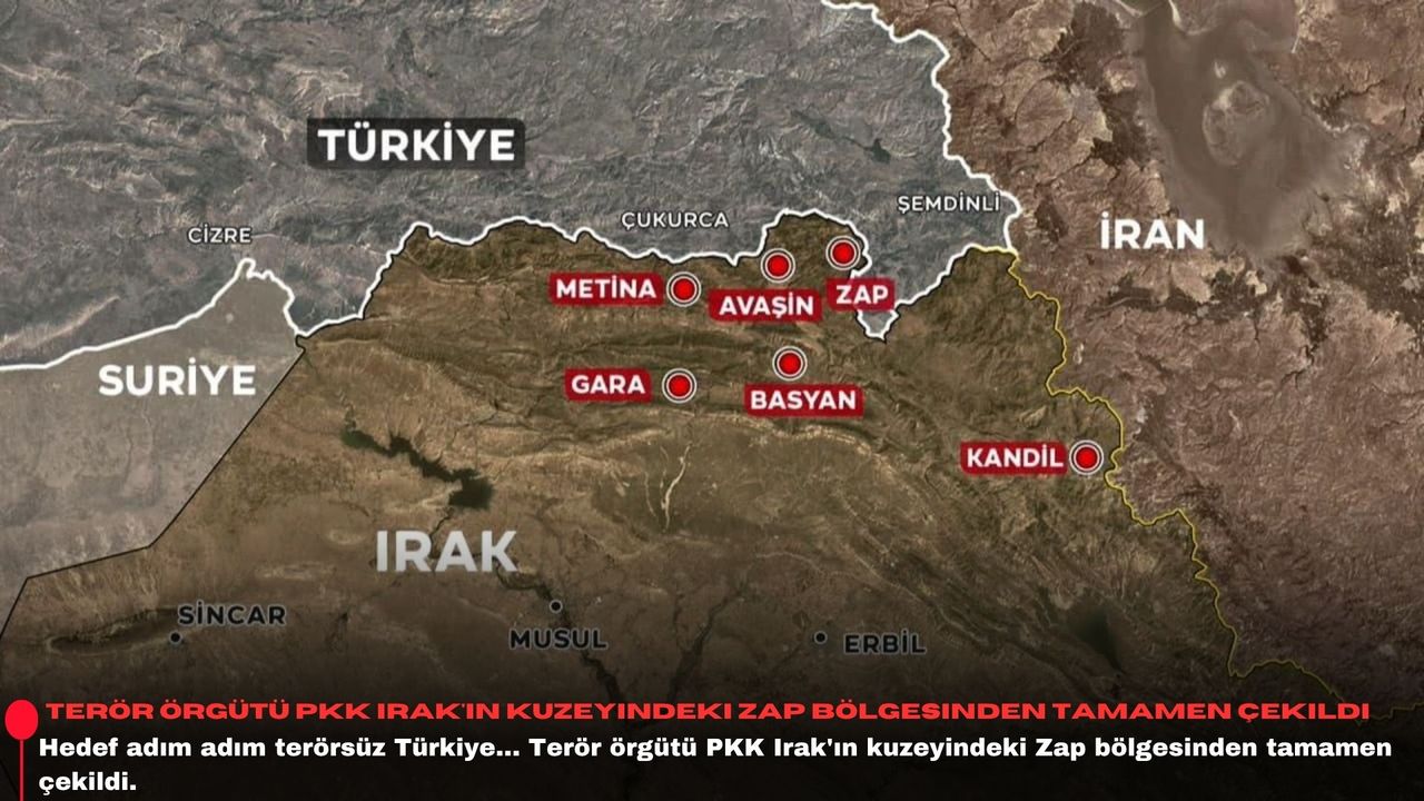 Terör örgütü PKK Irak'ın kuzeyindeki Zap bölgesinden tamamen çekildi.