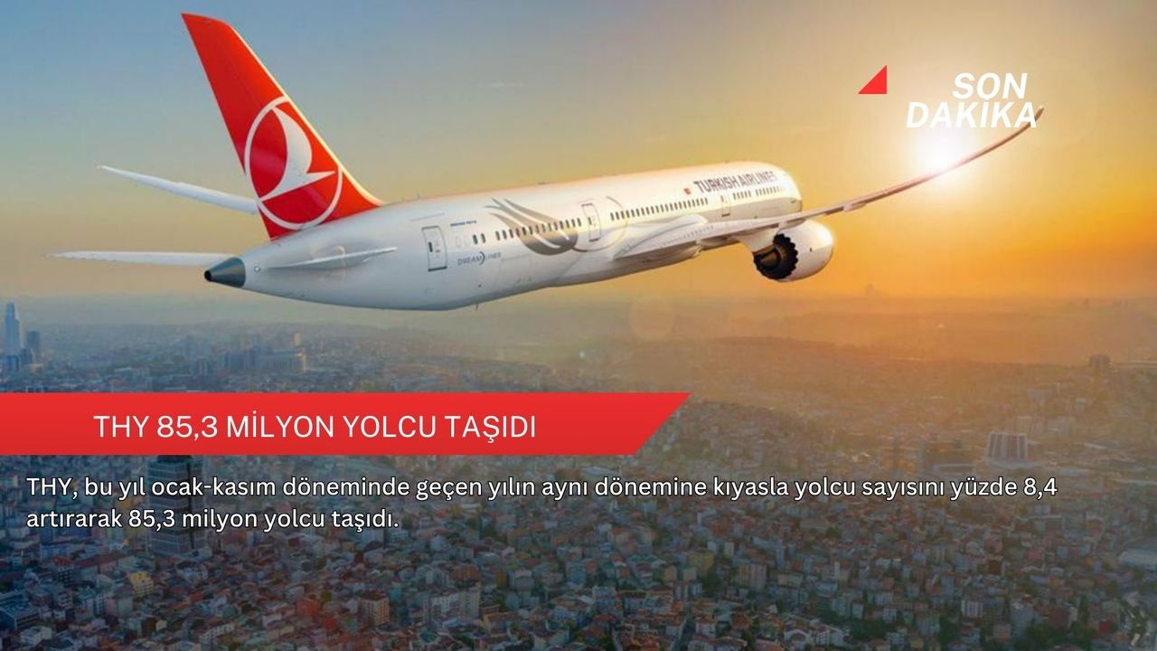 Bir önceki yıla kıyasla yılın 11 ayında taşınan toplam yolcu ve kargo verilerine bakıldığında THY, 2024 yılının aynı dönemine göre taşınan yolcu sayısını yüzde 8,4 artırarak 85,3 milyon yolcu taşıdı.