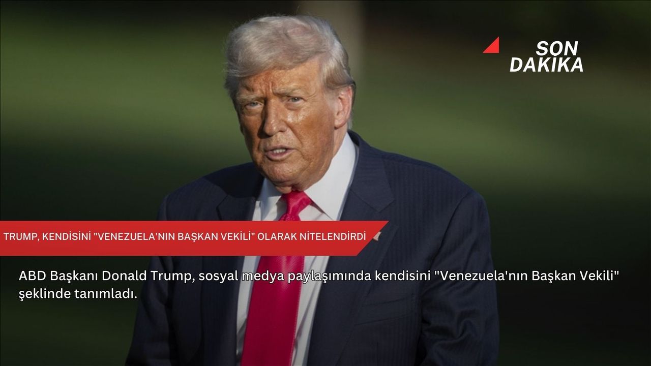 Görseldeki Trump fotoğrafının altında "Venezuela'nın Başkan Vekili" ifadesi dikkati çekti.