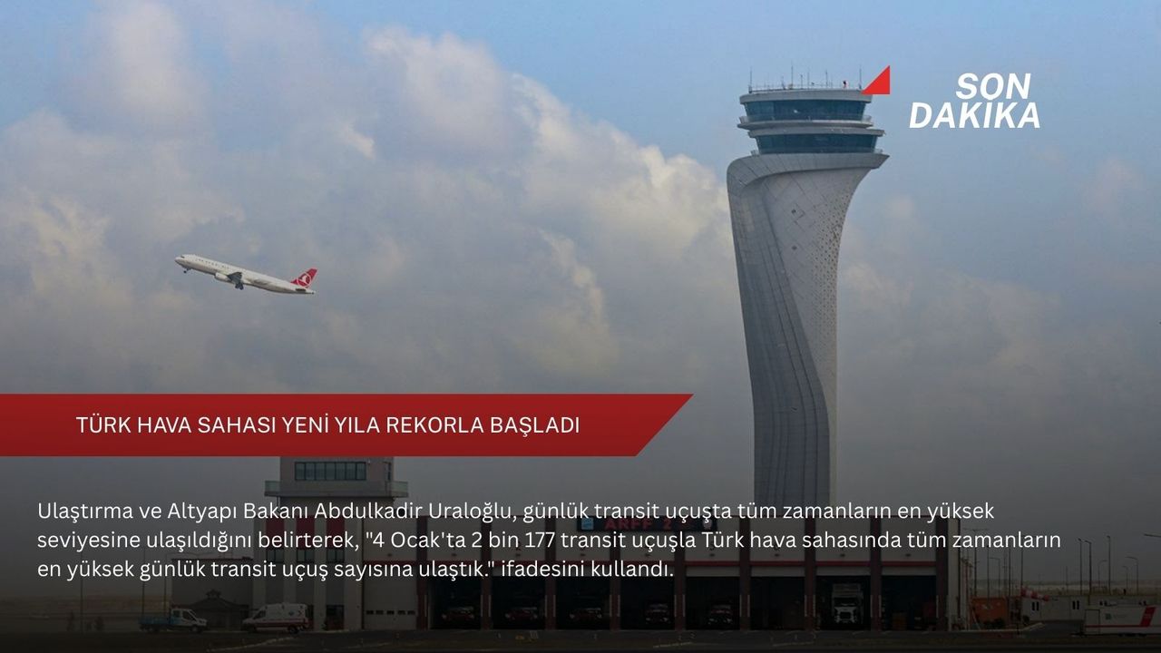 "Devlet Hava Meydanları İşletmesi (DHMİ) Hava Trafik Kontrol Merkezimizin üstün koordinasyon ve yönetim kabiliyetiyle günlük transit uçuşta tüm zamanların en yüksek seviyesine ulaştık. 4 Ocak'ta 2 bin 177 transit uçuşla Türk hava sahasında tüm zamanların en yüksek günlük transit uçuş sayısına ulaştık. Söz konusu uçuşlara emniyetli ve etkin şekilde hizmet sunarak, 31 Ağustos 2025'te kaydedilen 1906 uçuşluk önceki rekoru geride bıraktık."