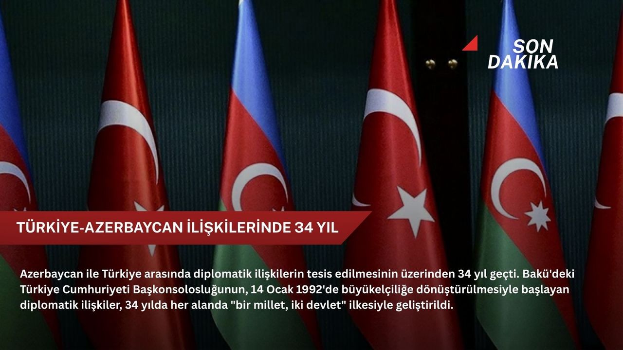 Azerbaycan'ın Sovyetler Birliği'nden bağımsızlığını kazanmasının ardından, 14 Ocak 1992'de Bakü'deki Türkiye Cumhuriyeti Başkonsolosluğunun büyükelçilik statüsüne yükseltilmesiyle başlayan diplomatik ilişkiler, geçen 34 yılda "bir millet, iki devlet" ilkesi temelinde istikrarlı biçimde geliştirilerek müttefiklik düzeyine taşındı.
