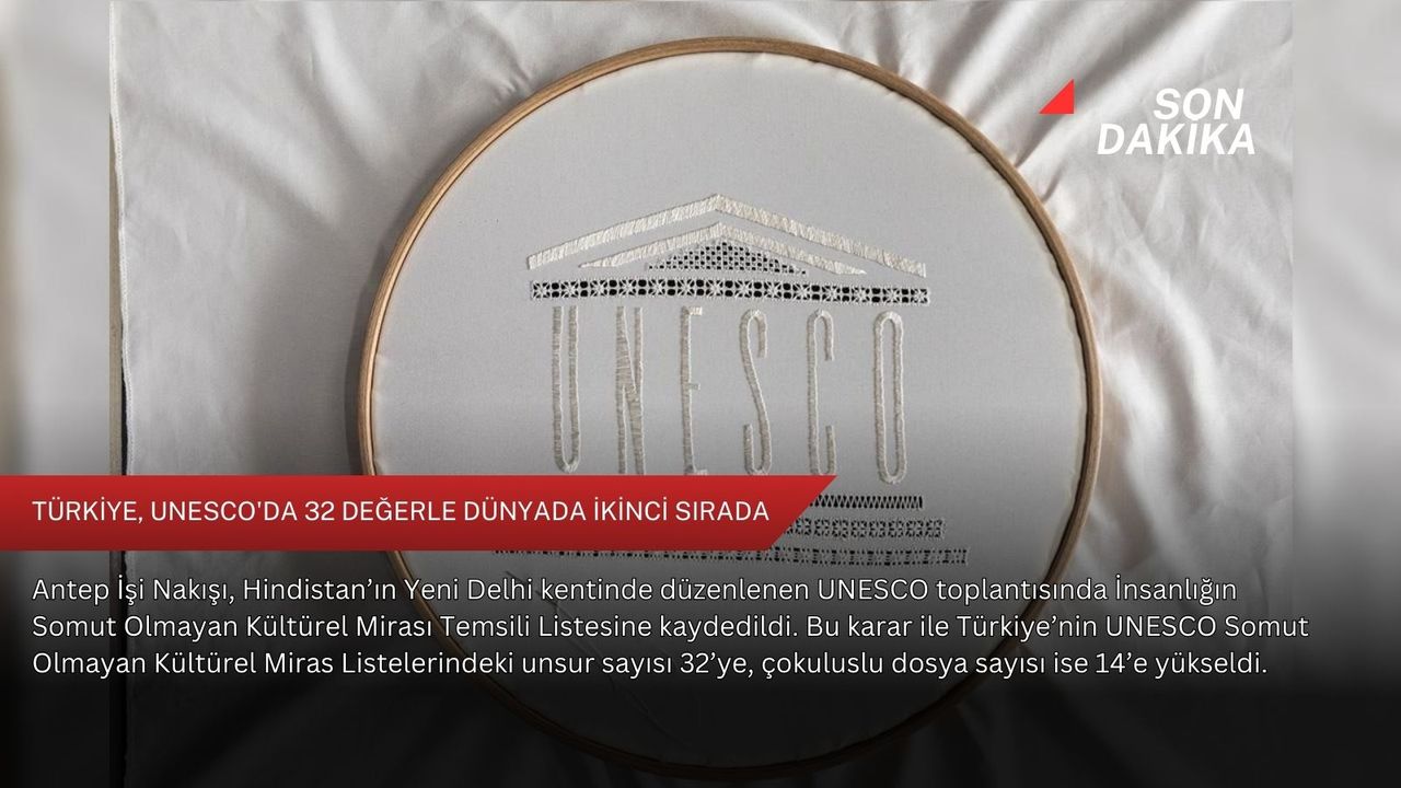 Kültür ve Turizm Bakanlığı Yaşayan Miras ve Kültürel Etkinlikler Genel Müdürlüğü, yaşayan miras taşıyıcıları, yerel yönetimler, sivil toplum kuruluşları ve ilgili paydaşların aktif katılımıyla yürütülen çalışmalarla Türkiye, UNESCO Somut Olmayan Kültürel Miras Listelerinde kayıtlı 32 değerle dünyada ikinci ülke konumunu koruyor.