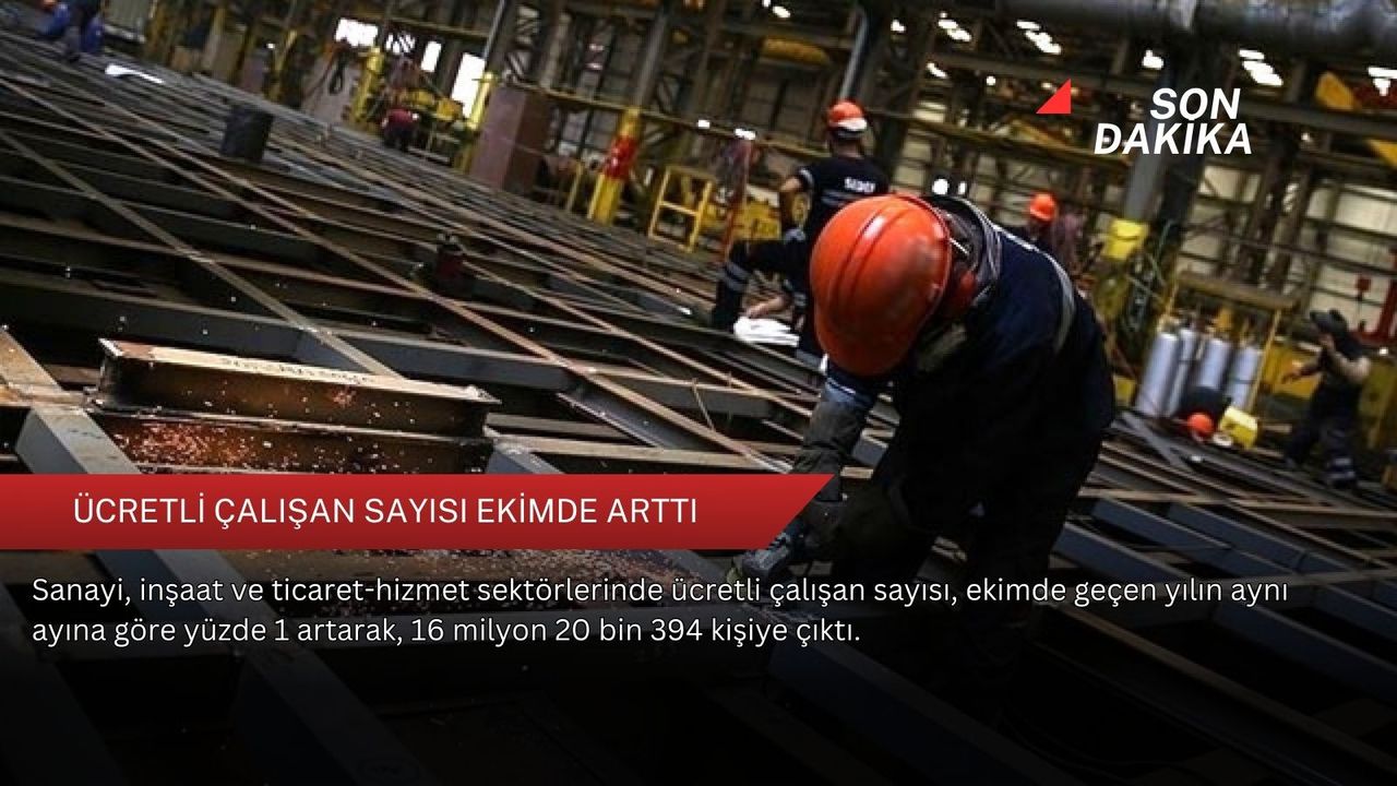 Buna göre, sanayi, inşaat ve ticaret-hizmet sektörleri toplamında ücretli çalışan sayısı ekim ayında bir önceki yılın aynı ayına göre yüzde 1,0 arttı. Ücretli çalışan sayısı bir önceki yılın aynı ayında 15 milyon 860 bin 31 kişi iken, 2025 yılı Ekim ayında 16 milyon 20 bin 394 kişi oldu.