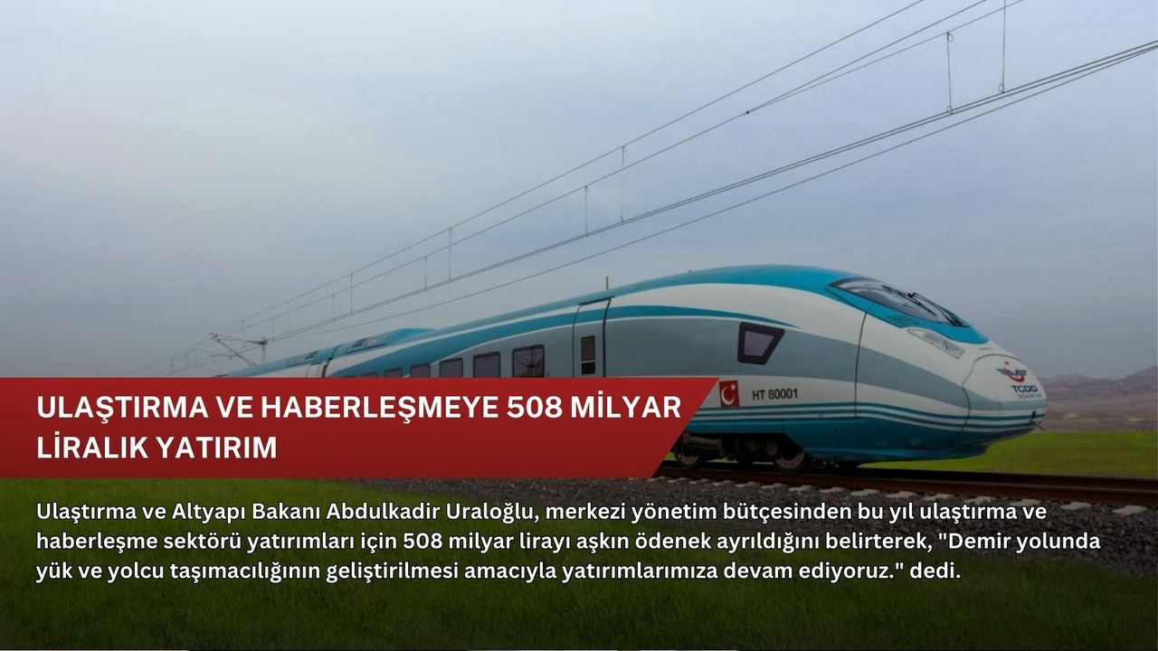"Bu yıl 508 milyar 166 milyon 500 bin liralık ulaştırma-haberleşme yatırımları listesinin ilk sırasında 261 milyar 580 milyon lirayla demir yolları bulunuyor. Demir yolu ulaştırmasında, TCDD Genel Müdürlüğüne 111 milyar 580 milyon lira, TCDD Taşımacılık AŞ'ye 38 milyar lira ve Bakanlığımız tarafından gerçekleştirilecek diğer demir yolu projelerine 112 milyar lira ayrıldı. Demir yolunda yük ve yolcu taşımacılığının geliştirilmesi amacıyla yatırımlarımıza devam ediyoruz. Türkiye'nin uluslararası yük koridorlarıyla olan bağlantısının güçlendirilmesi ve bölgede önemli bir lojistik merkezi haline gelmesi için çalışmalarımızı sürdüreceğiz."