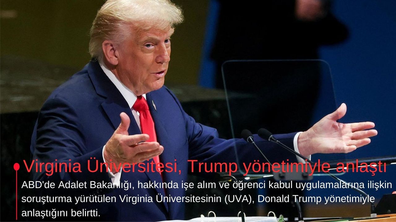 Bakanlığın üniversitenin işe alım ve öğrenci kabul politikalarına ve medeni haklarla ilgili kaygılarına ilişkin devam eden soruşturmaları askıya alacağı aktarılan açıklamada, "UVA'nın üniversitede DEI'yi (çeşitlilik, eşitlik ve kapsayıcılık) yasaklayan planlı reformlarını tamamlaması halinde, Bakanlık UVA'ya karşı yürüttüğü soruşturmaları kapatacaktır." ifadesine yer verildi.