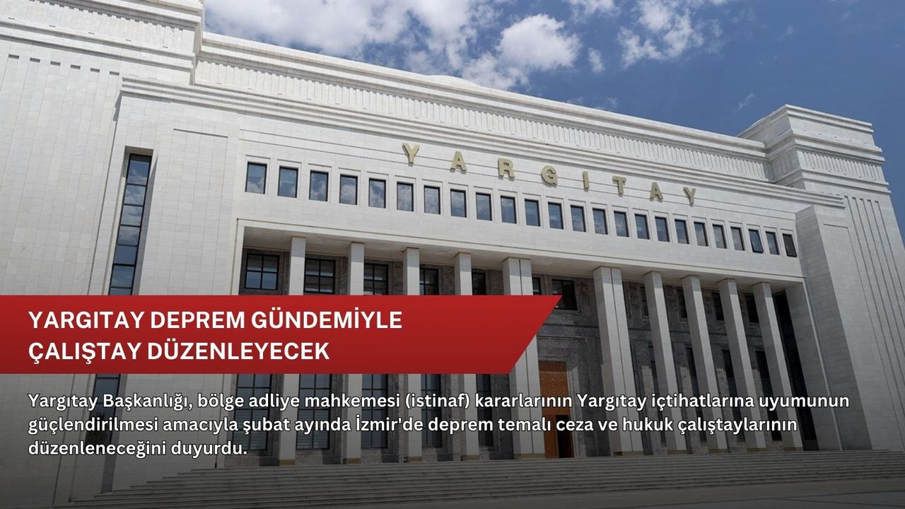 Yargıtay Başkanlığından yapılan açıklamada, deprem temasıyla Hukuk Çalıştayı'nın 3-8 Şubat'ta, Ceza Çalıştayı'nın ise 10-15 Şubat tarihleri arasında İzmir'de düzenleneceği belirtildi.