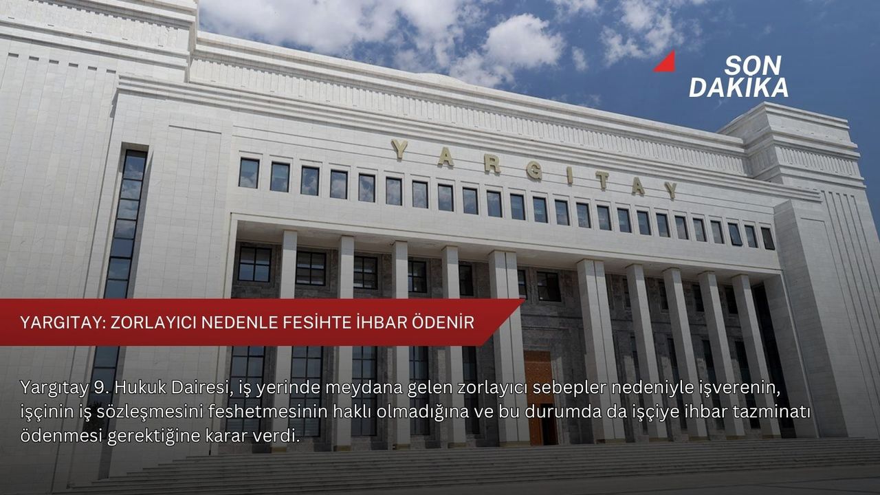 "İş yerinde meydana gelen zorlayıcı nedene dayanarak işveren, iş sözleşmesini haklı nedenle feshedemez." hükmüne yer verilen kararda, davacı işçiye ihbar tazminatı ödenmesi gerektiği, mahkemenin aksi yönde hüküm tesis etmesinin hukuka aykırı olduğu belirtildi.