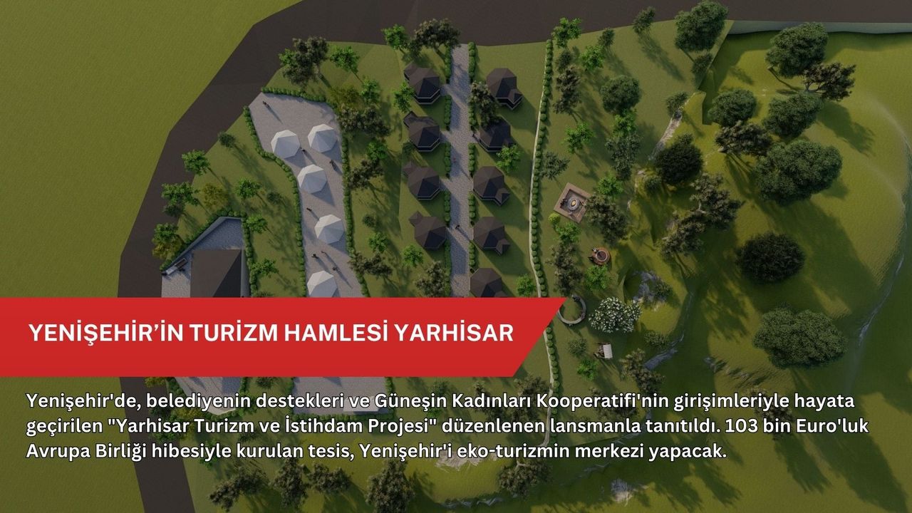 Toplantıda konuşan Yenişehir Belediye Başkanı Ercan Özel, göreve geldikleri günden bu yana Yenişehir'i "konaklanan bir turizm kenti" yapma hedefiyle çalıştıklarını vurguladı. Yarhisar Şelalesi'nin yanındaki yaklaşık 5 bin metrekarelik alanda kurulan tesisin önemine değinen Başkan Özel, şunları söyledi: "TÜRSAB ve uluslararası acentelerle yaptığımız görüşmelerde gördük ki; dünya artık eko-turizm ve agro-turizme yöneliyor. Yarhisar Projesi bu vizyonun ilk meyvesidir. Kıl çadır konseptli bu tesisimiz, AB'den alınan 103 bin Euro'luk hibe ile tamamlandı. Hedefimiz; Yenişehir'i sadece ziyaret edilen değil, konaklama yapılan, anı biriktirilen ve tekrar tekrar gelinmek istenen bir turizm kenti haline getirmek."