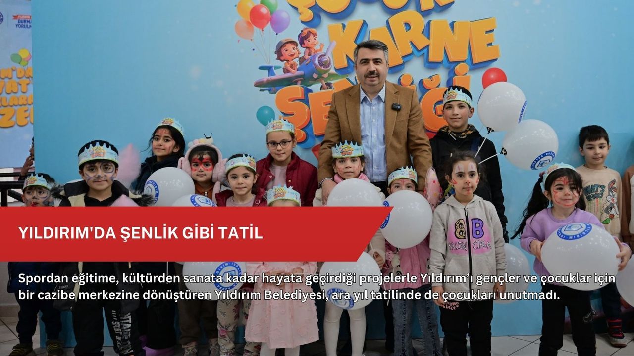 Karne Şenliği’nde çocukları yalnız bırakmayan Yıldırım Belediye Başkanı Oktay Yılmaz; “Ara yıl tatilinde çocuklarımızı unutmadık. Kültür Sanat ve Sosyal İşler Müdürlüğümüz tarafından düzenlenen Karne Şenliği ile binlerce evladımızın hem eğlendiği hem de kültürel değerlerimizle buluştuğu dolu dolu bir tatil geçirmesini sağladık.