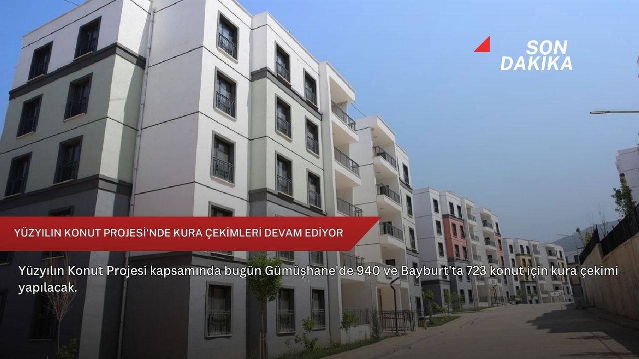 Kura takvimine göre bugün Gümüşhane'de 940 ve Bayburt'ta 723, 15 Ocak Perşembe günü Artvin'de 1020 ve Rize'de 2 bin 42, 17 Ocak Cumartesi günü Erzurum'da 4 bin 905 ve Malatya'da 9 bin 659, 18 Ocak Pazar günü ise Erzincan'da 1760 konut için kura çekimi yapılacak.
